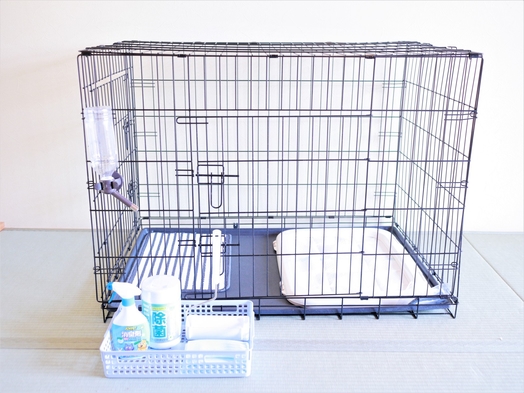 ケージ1台、食器、給水器、トイレ、トイレシート、消臭スプレー、コロコロなどの